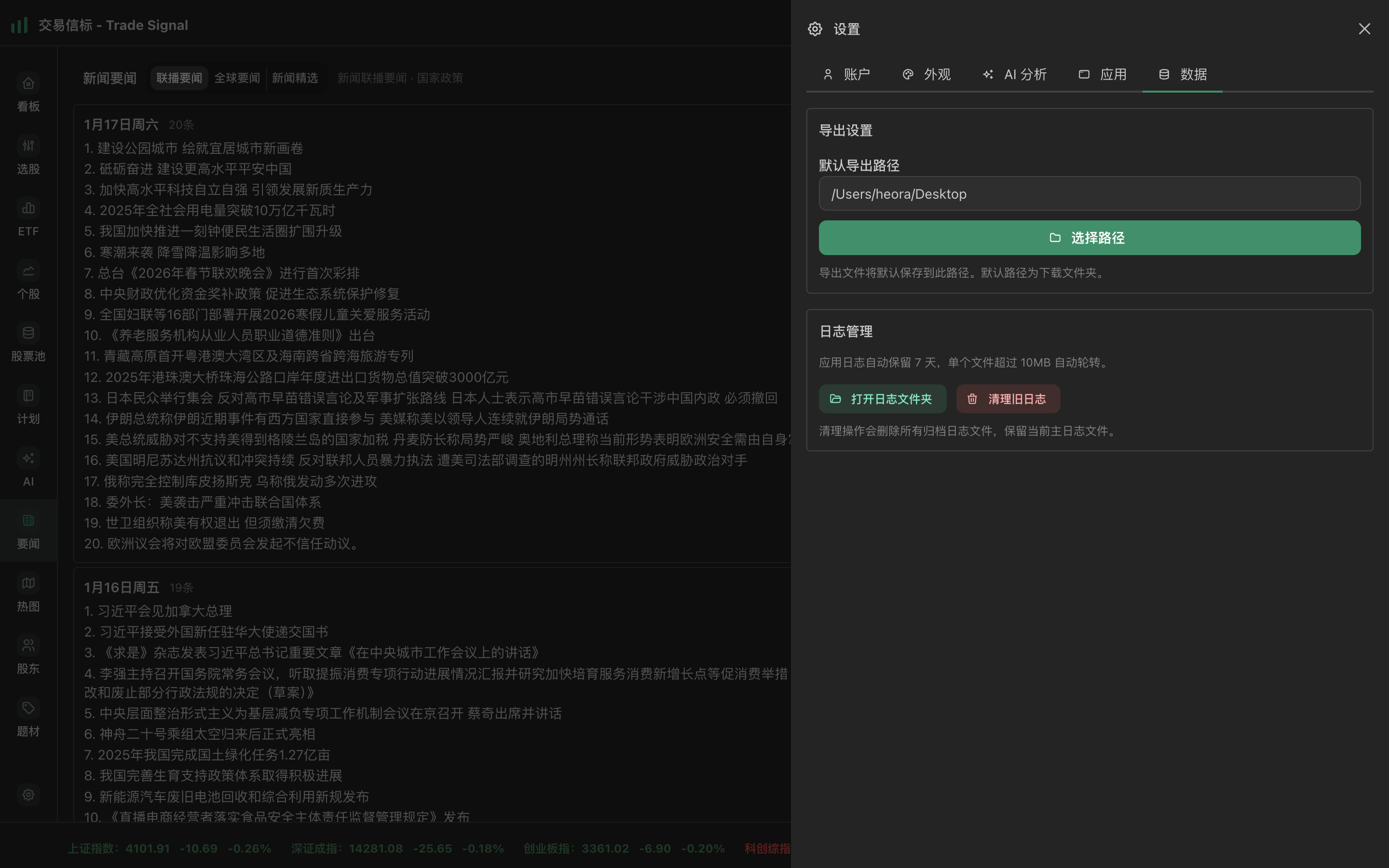 授权通过后,进入应用主页。应用会通过实时接口自动同步最新的市场数据。