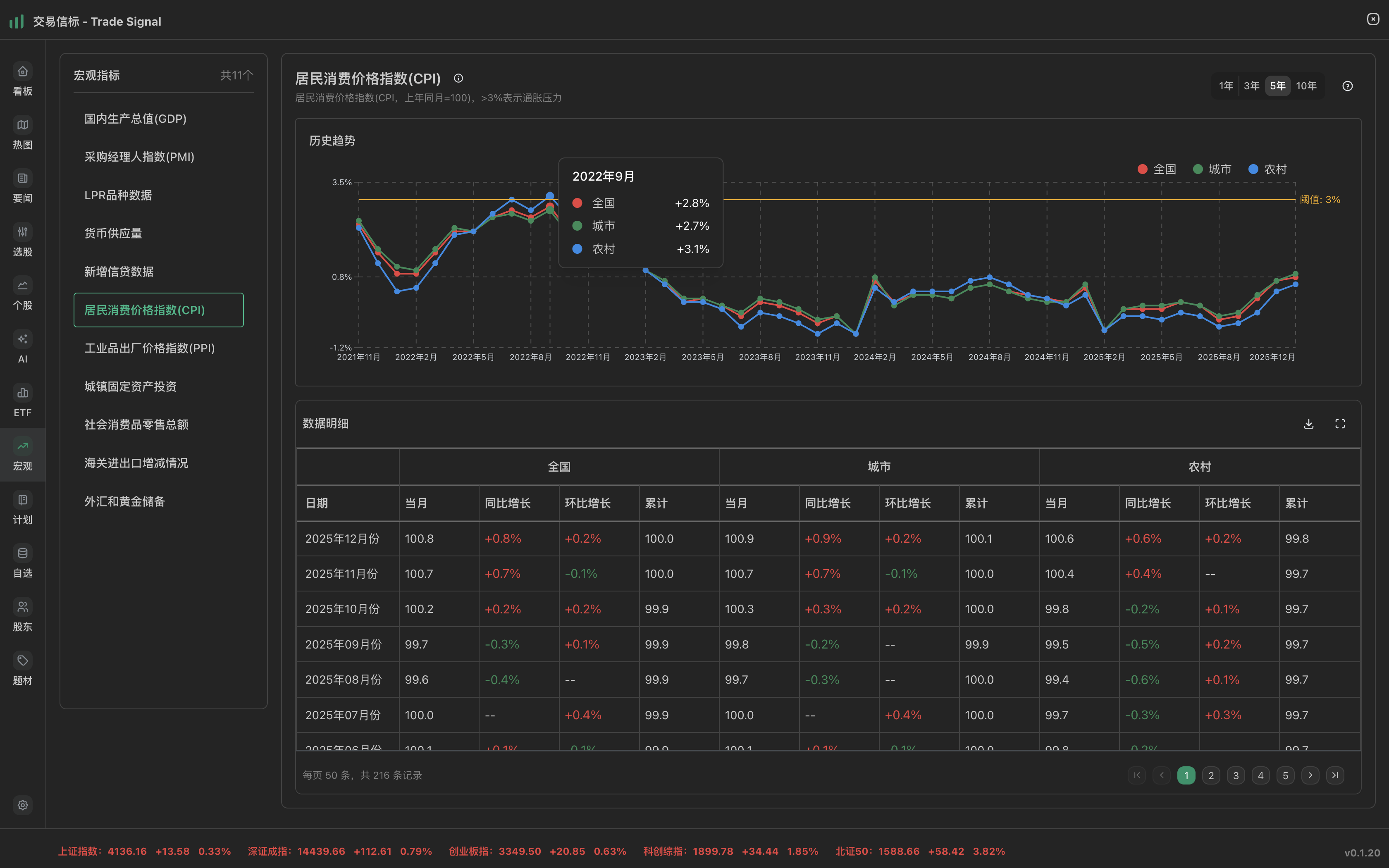 - 查看指标:导航菜单 → 宏观 → 选择指标类别