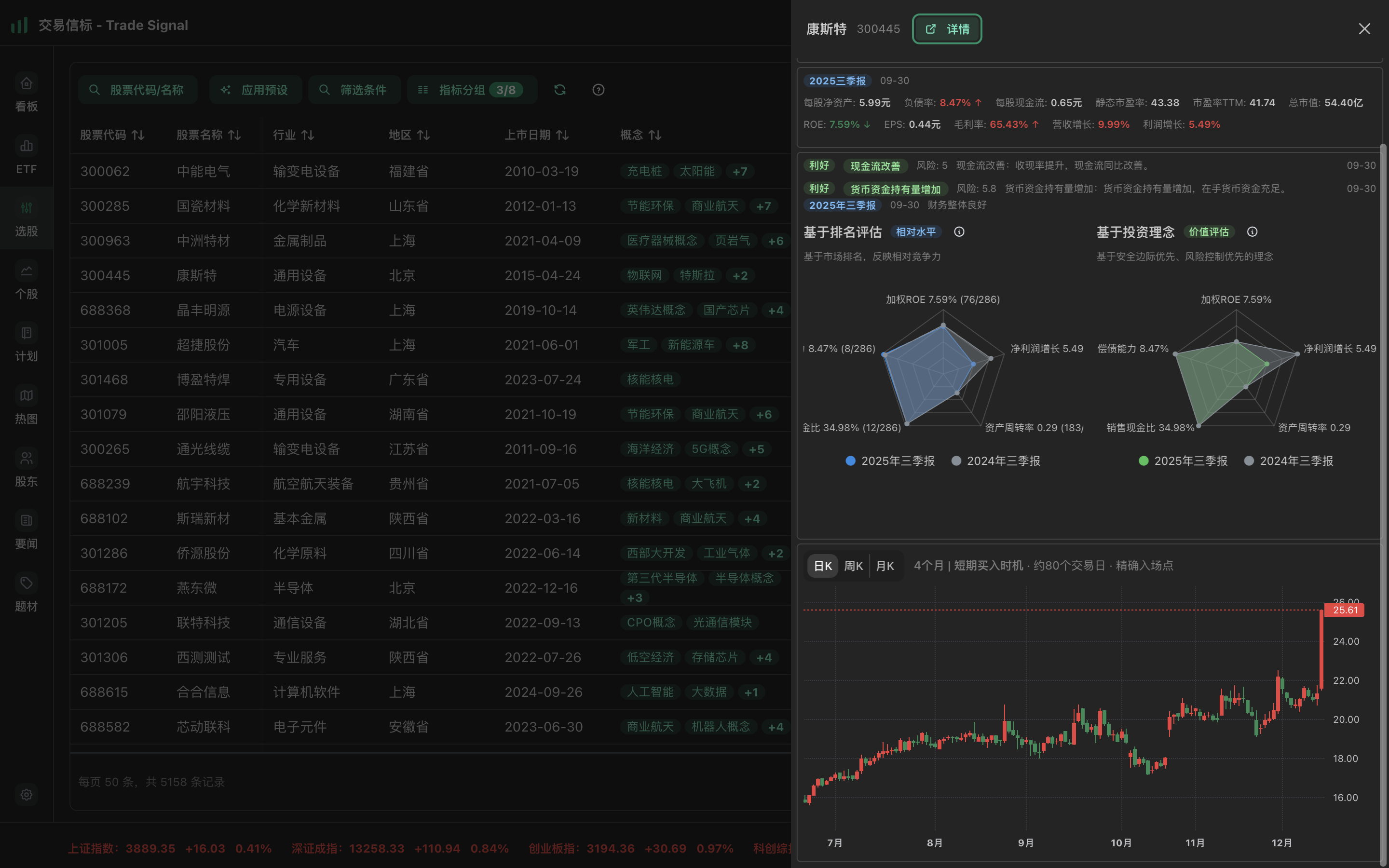 股票筛选器是基于价值为基、趋势为策、风控优化的投资理念设计的多维度股票筛选工具,帮助您快速定位符合投资理念的个股