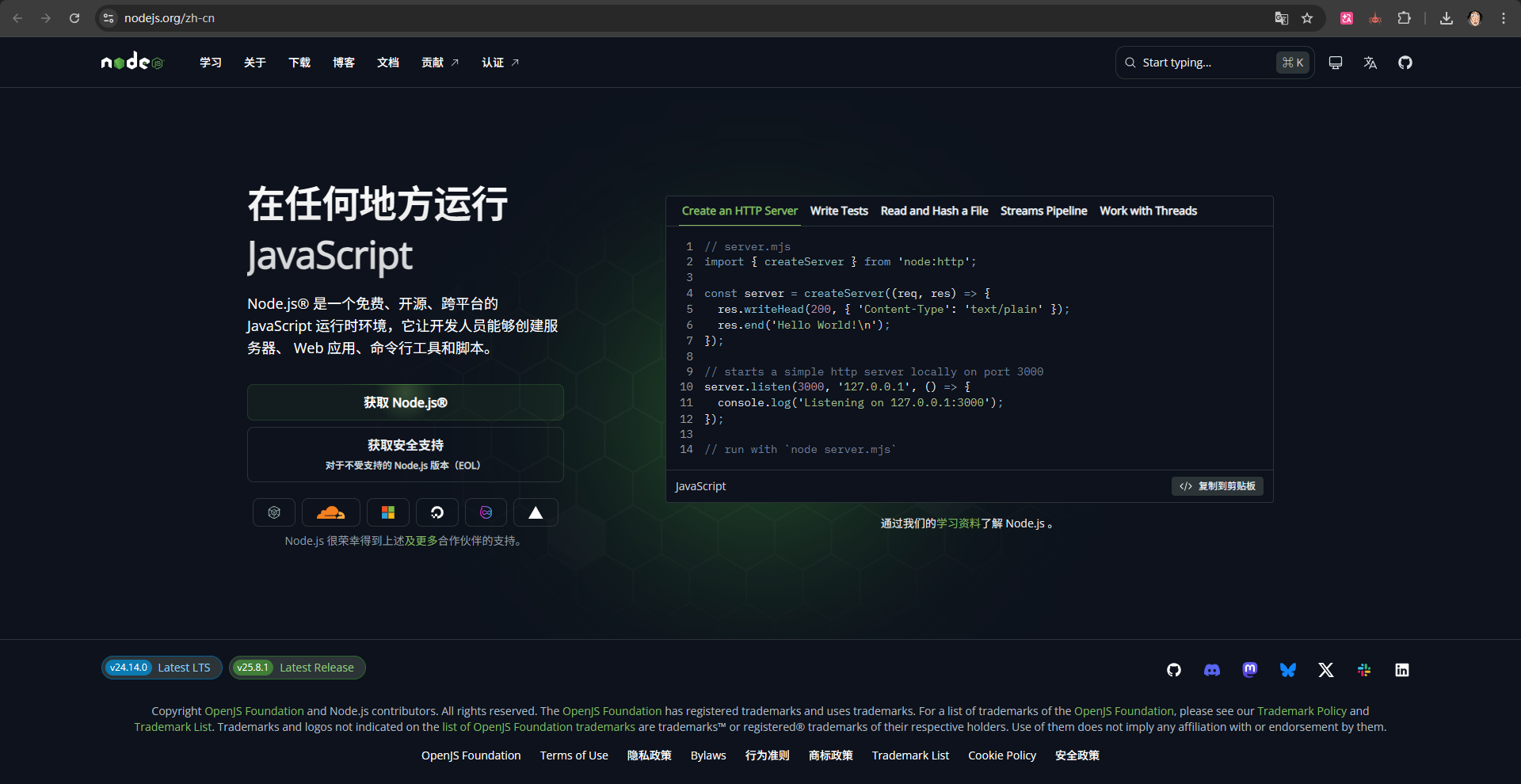 Node.js 是 JavaScript 运行环境,OpenClaw 等工具需要 Node.js >= 18.0.0。